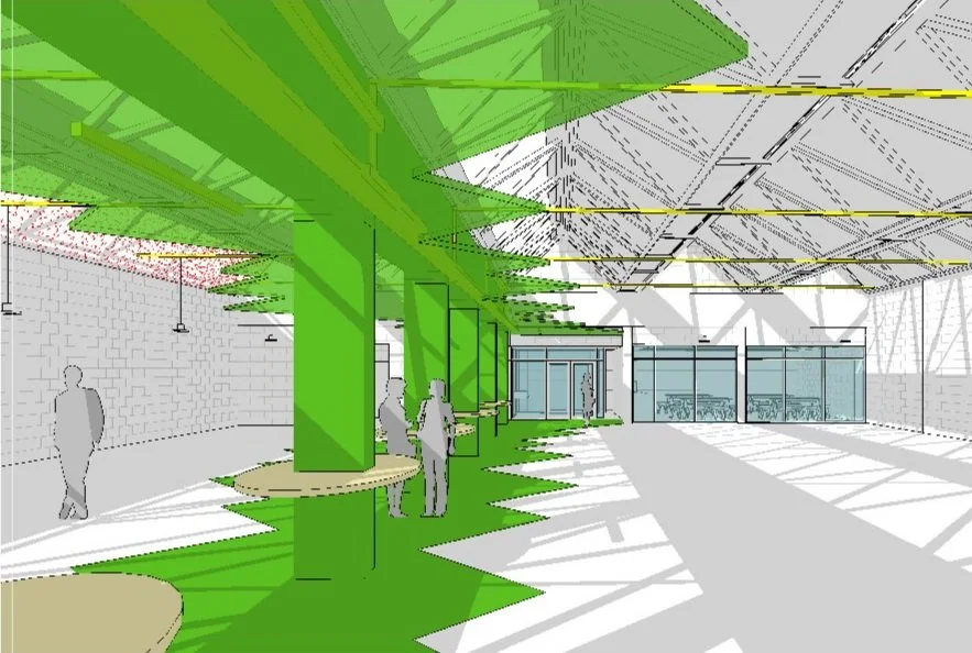 The original Krups factory is characterised by classic north facing sawtooth rooflights which are retained allowing generous natural light to filter into the space providing a controlled semi- external environment for teaching construction techniques. The design conceives the centre as a large exhibition space accommodating a range of installations illustrating the many and various systems and construction methods available for improving energy standards and reducing carbon emissions to assist in the educational and training process. For example, the classroom is provided in the main exhibition space and is itself designed using multiple wall construction techniques. Each wall type is effectively de-constructed to reveal the wall build up and the various materials and construction techniques are permanently on display to enable a better understanding of the whole construction process required in each case. The project also includes many samples of mechanical and electrical systems available for efficient energy design many of which can be assembled and disassembled as part of the training process.